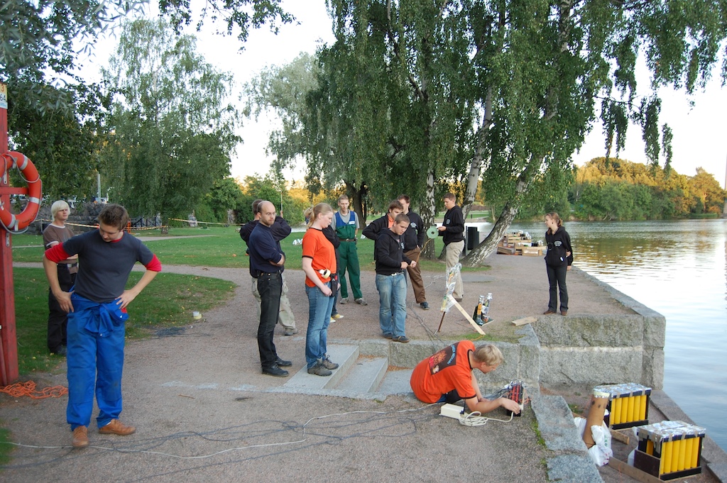 Yksi tekee työt Vantaanjoen rannalla, muut katsoo