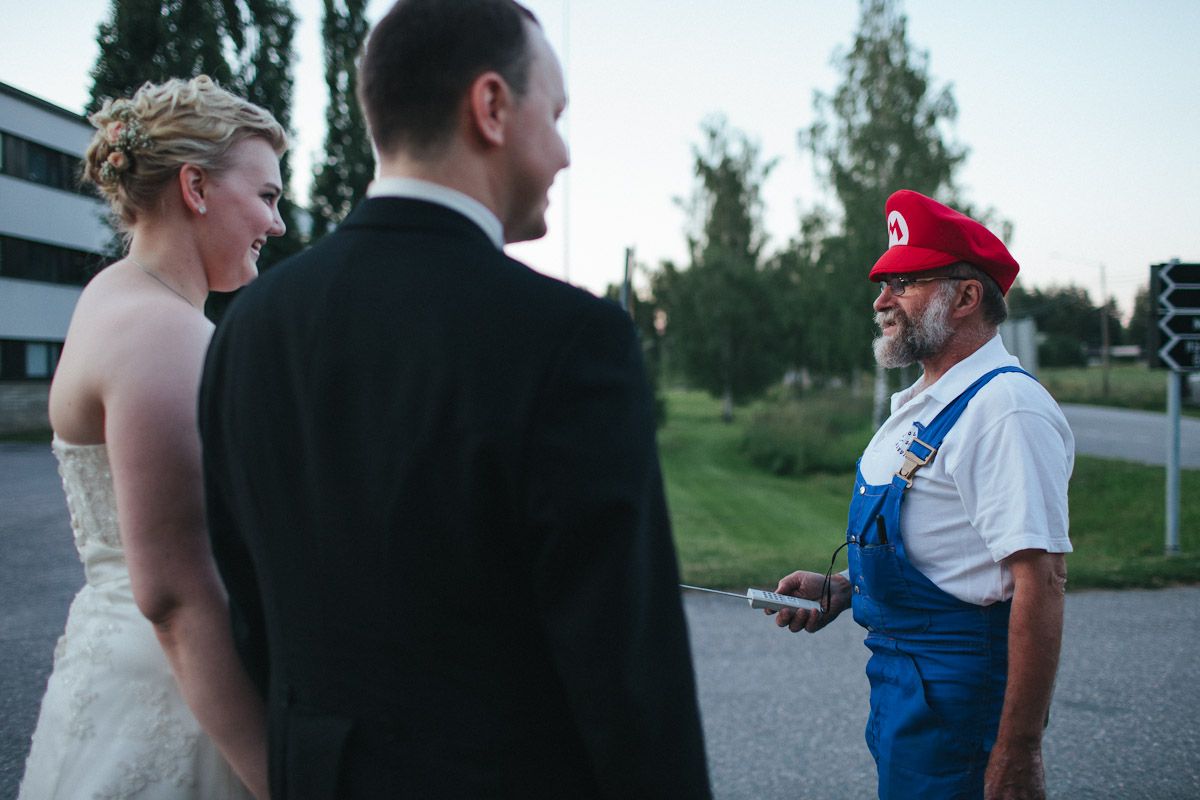 Hääpari kuuntelee tarkkaan ”Mariota”