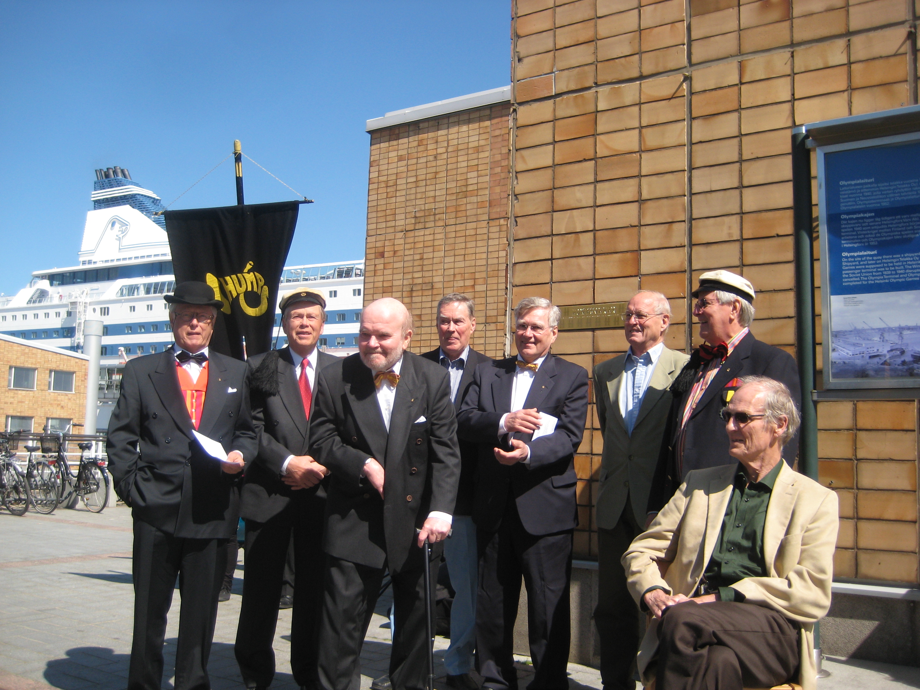 Humpsvakar 50v, perustavat jäsenet vihkii plaketin ensimmäisen esiintymisen paikalla Olymppiaterminaalilla 05_2012